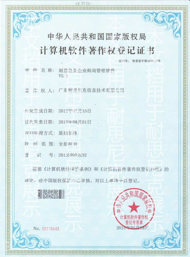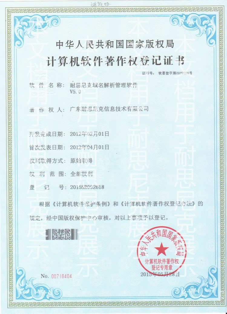 計(jì)算機(jī)軟件著作權(quán)登記證書